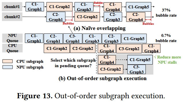 - out-of-order subgraph execution : NPU와 CPU를 병렬적으로 활용하는데에 따른 bubble을 줄인다.